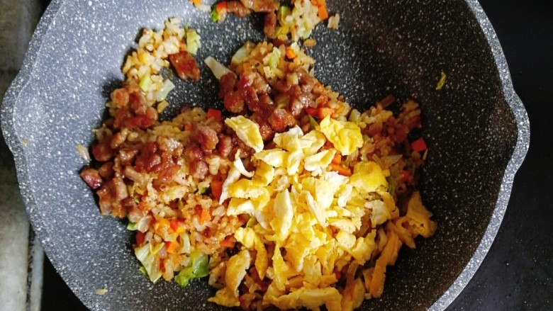 11. 最后倒入之前炒熟的和牛和鸡蛋