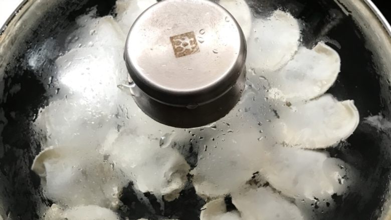 7. 水被烧干后,饺子底部会出现这层脆脆的表皮会很好吃,很香哦!
