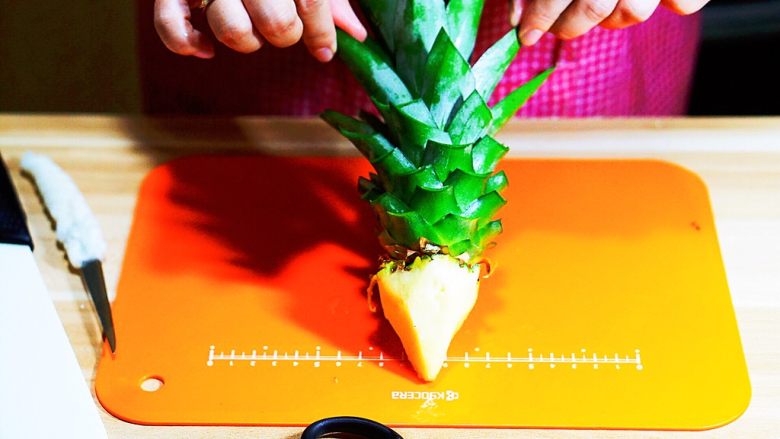 1. 选一个叶子多一点的菠萝,三分之二处切开,注意别扎手