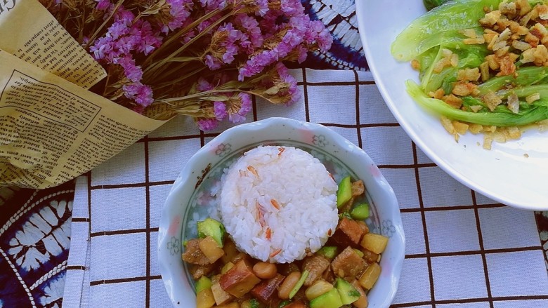17. 搭配杂粮米饭和猪油渣拌蔬菜,就是美味营养的午餐