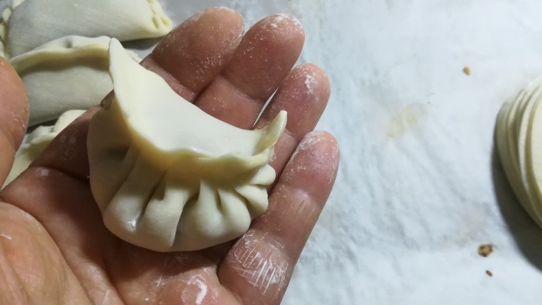 10. 然后可以这样直接让饺子皮的中心向下站立。