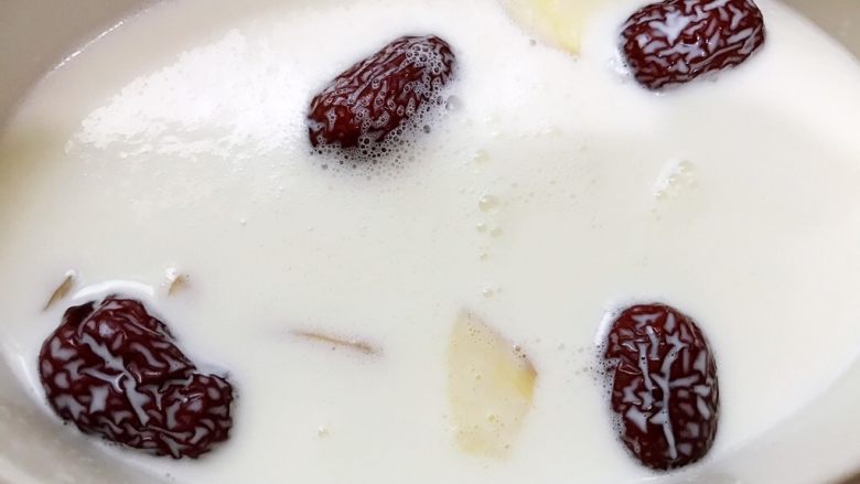 11. 加入牛奶 隔水炖2个小时