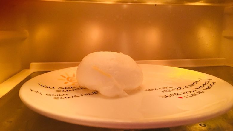17. 用一个勺子,把锅里的水浇在蛋白上
