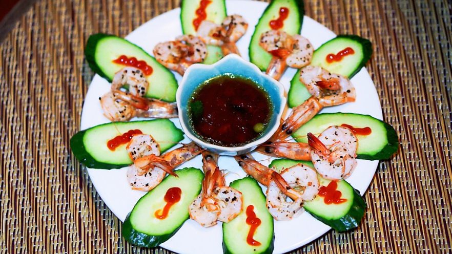 12. 黄瓜切片如图这样跟虾穿插摆开