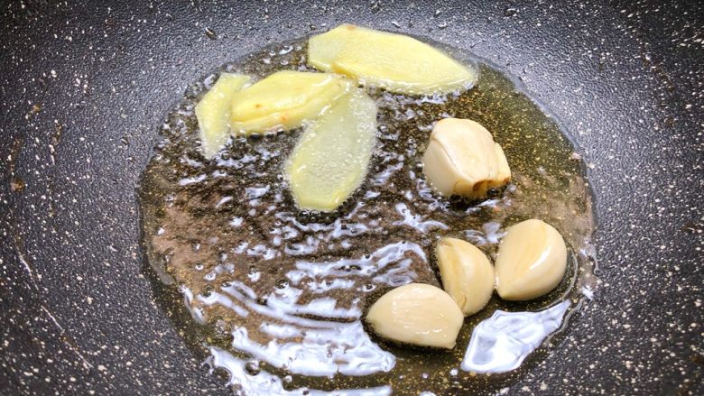 10. 热锅放入适量油,放入蒜瓣和姜片,小火炒香