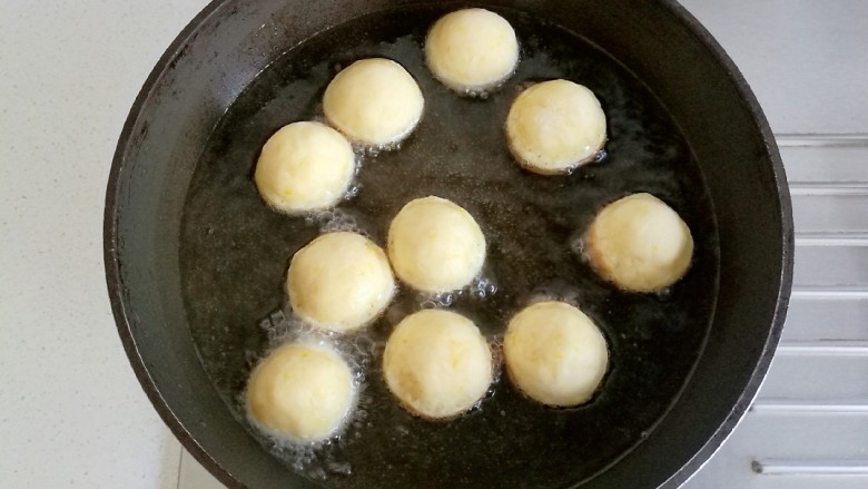 19. 锅中放油加热,放入起司丸子。
