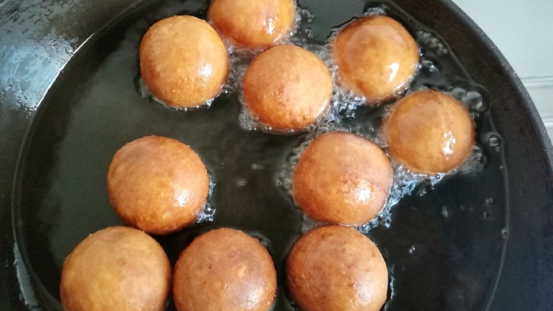 20. 把丸子炸至金黄就可以捞出来了。