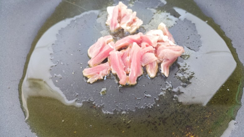 5. 锅里热油,先把瘦肉丝放进去炒