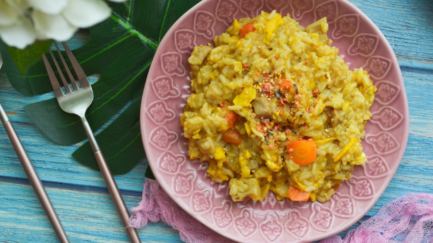 这款更偏向于焖饭,适合小宝宝~如果买的咖喱粉就会变成炒饭~也很好吃。