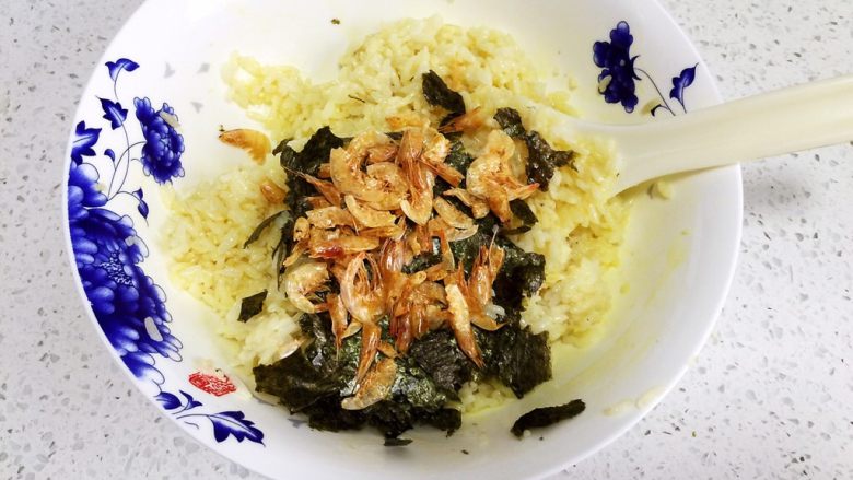 紫菜、虾米是补钙补碘的佳品,炒出的米饭也是香香的