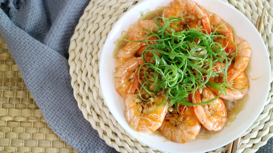 无油烟少油腻的蒸菜,简单营养十足,是一种很健康的菜品,今天的这道蒜蓉粉丝蒸虾,绝对是色香味俱全的美食了,洁白的粉丝搭配金黄的大虾点缀上翠绿的香葱,鲜香四溢中虾肉紧实粉丝爽滑
