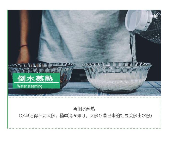 2. 泡好的红豆与糯米,再倒入一点水蒸熟
