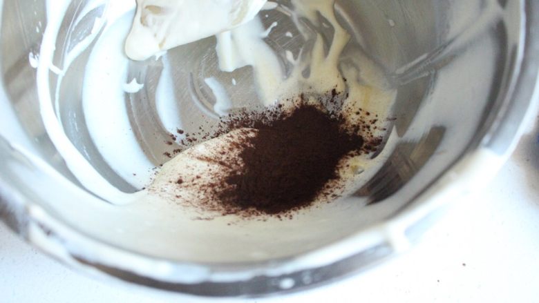 12. 剩下的面糊中倒入适量可可粉搅拌均匀,然后装入裱花袋