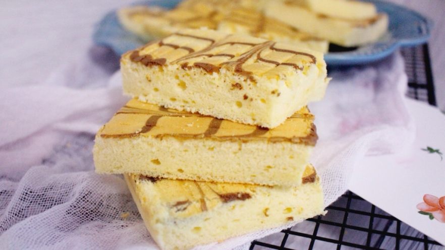 13. 裱花袋剪小口,在蛋糕糊上面画出均匀的横线