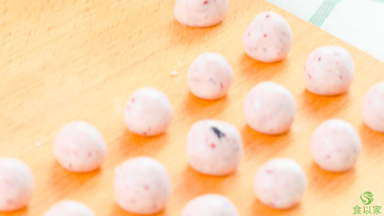 7. 搓成小圆子。做好的圆子一次吃不完,可以放冰箱冷冻保存,就像冷冻水饺一样