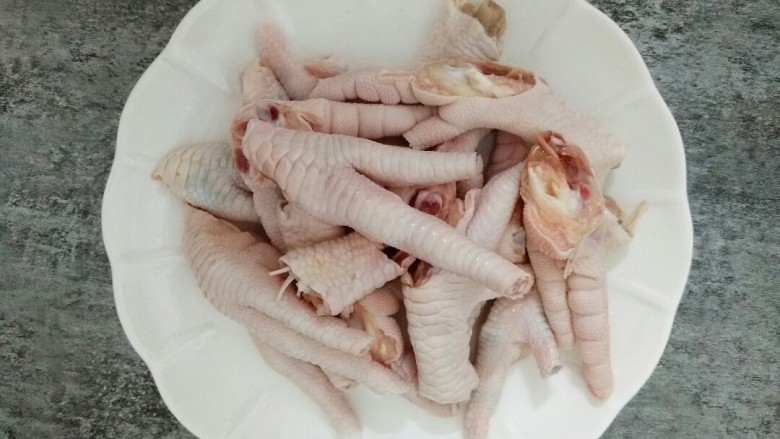 1. 鸡爪洗净,剪掉指甲,切成小块。