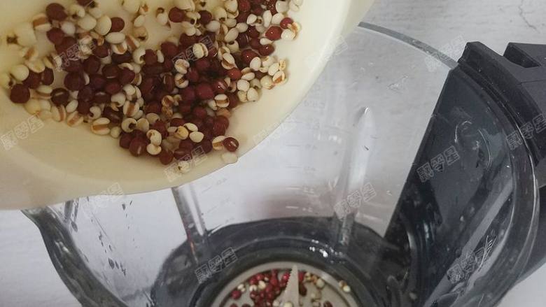 4. 将红豆、薏仁倒入破壁机的料理杯中