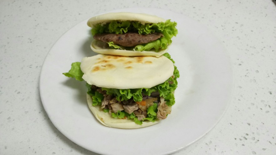 美味营养,自己制作的肉夹馍——用的纯瘦肉制作的再放一点胡萝卜碎、洋葱碎,再用身材裹住,一口下去有面、有肉、有青菜真的好吃,豆沙夹馍——自己自制的豆沙,含糖量底,营养健康,有没有❤动试一试啊?