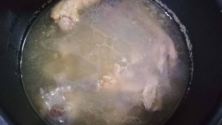 4. 水开后把浮沫捞掉,姜片也捞出来