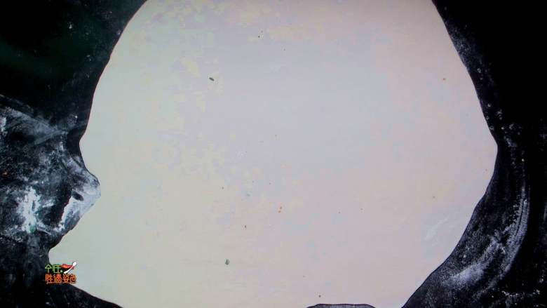 2. 表面撒薄粉,然后卷在擀面棍上擀开,薄一点比较好