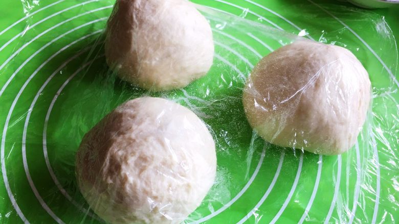 12. 分成三个剂子,盖上保鲜膜静置20分钟。