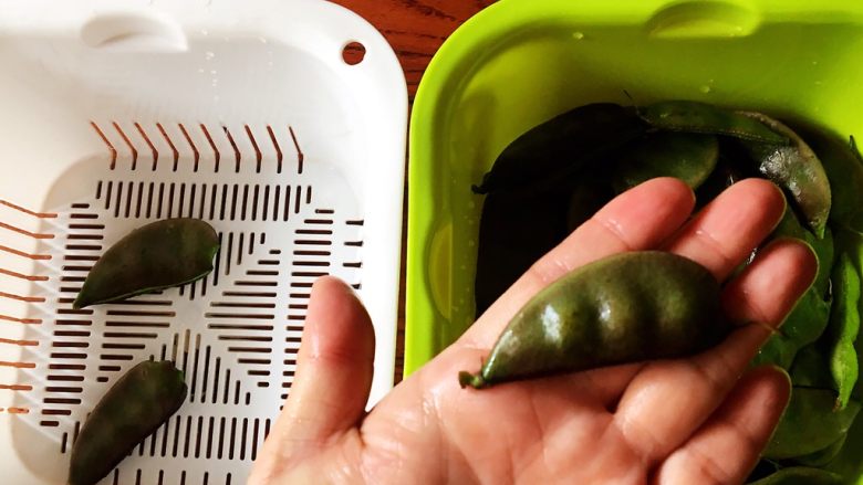 3. 要把扁豆边上的筋拉掉,老公坚持要我拍的清楚点😄