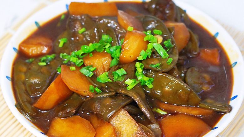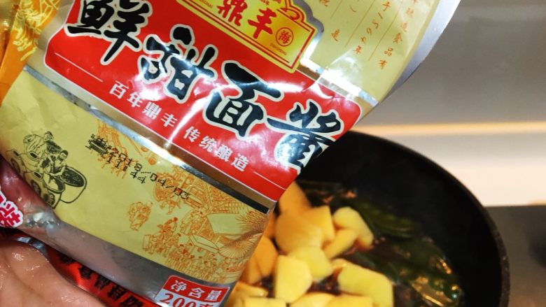 4. 不粘锅少油先把扁豆煸炒过后加水焖煮
