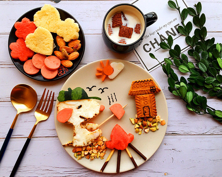 随着气温的日渐升高,海滩便成为家人、朋友聚集游玩的首选场所,抬眼望去,海天自成一色,心胸顿觉开阔,心情也自然爽朗,目光回收之间,满眼都是戏水、游泳的人们,美食、烧烤也是花样百出,酒瓶的碰撞声和人们的的欢笑声更是不绝于耳,耳濡目染间尽是一片片热闹非凡的情景。 这款“夏日沙滩早餐”,集蛋糕、饼干、鸡蛋、果菜、干果于一身,营养极为丰富。 戴着西瓜帽的史努比坐在沙滩上,惬意地烤着肉串……相信这份早餐定会深受小朋友的喜爱哦~