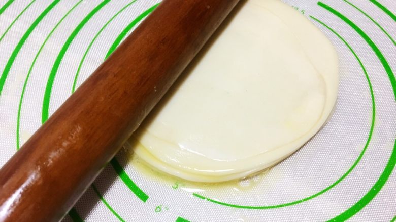 6. 最上面一张不刷油,摆整齐准备擀面杖