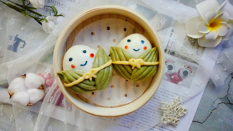 12. 依次做好后就可以下锅了,因为在做造型的时间,豆沙包已经进行二次发酵了。然后大火蒸15分钟,关火后再闷3分钟就可以出锅了。待稍微凉会了用食用色素笔画上表情,也可以用巧克力笔来画,用番茄酱做腮红。