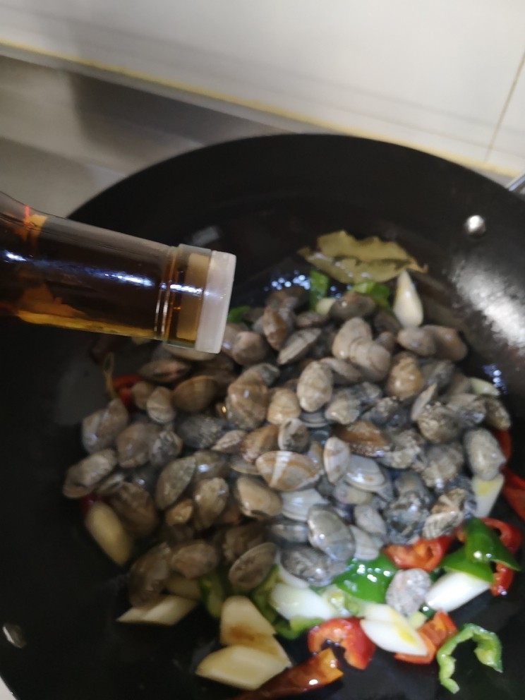 12. 少许醋 迅速翻炒至花蛤开口