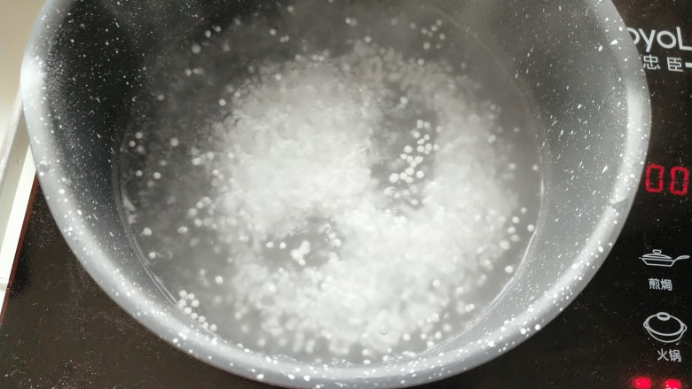 4. 中火煮至西米变软为透明色,中间小白点快没时,关火,过凉水多投几遍。