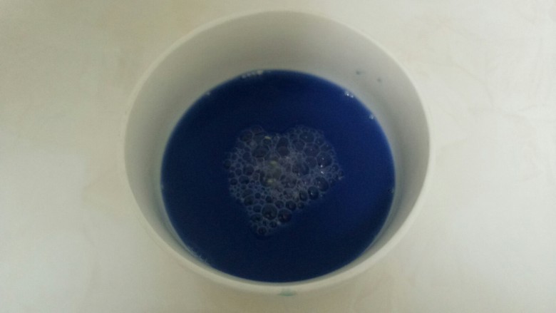 5. 将蝶豆花茶倒入面粉中,搅拌成絮状。