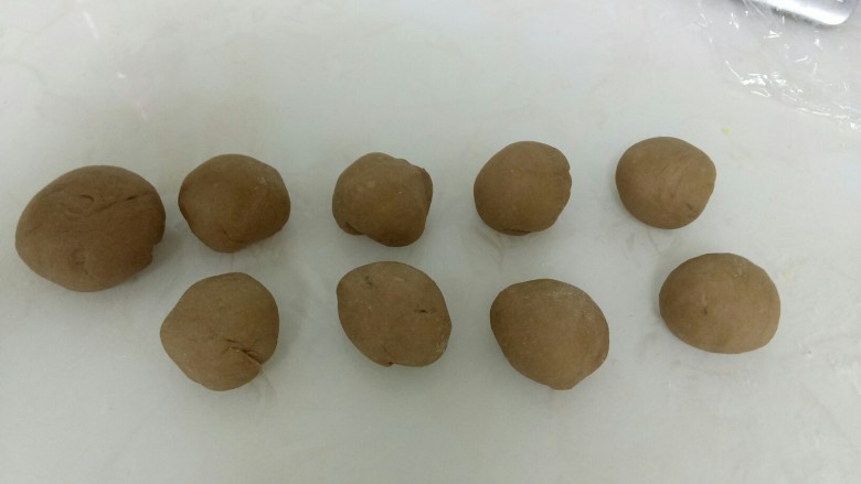7. 平均分成10份,其中用2个合在一起,活成比较大的剂子,全部揉光滑。