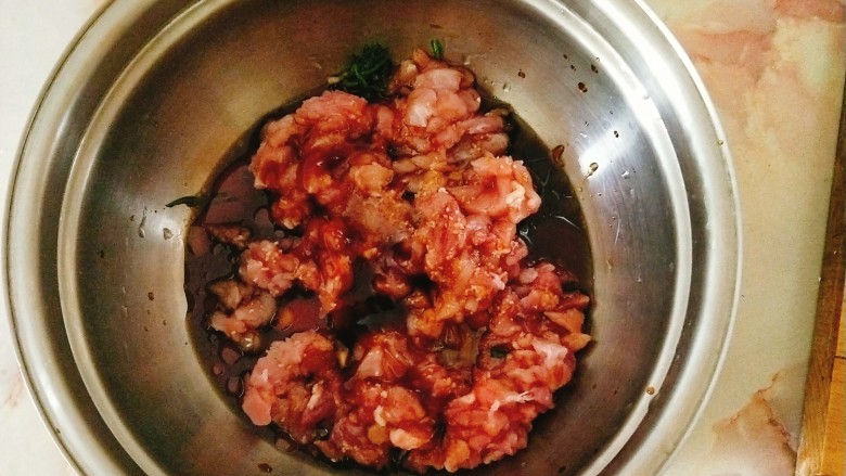 3. 肉馅中放入调料拌好
