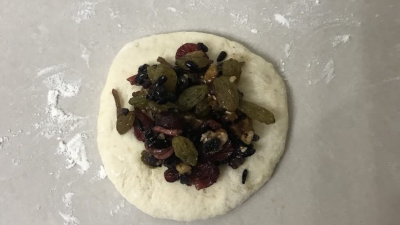 - 馅料:紫米饭、葡萄干、蔓越莓干、焦糖核桃,白芝麻 适量
