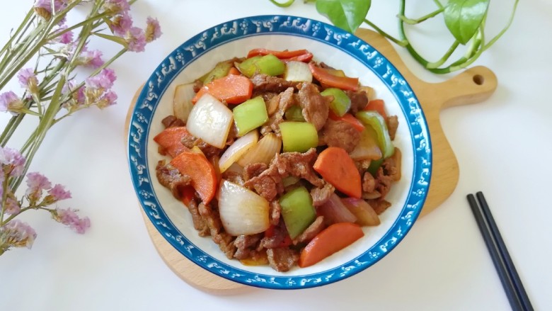牛肉营养丰富,搭配蔬菜做一道可口的家常牛肉小炒,下饭又好吃。