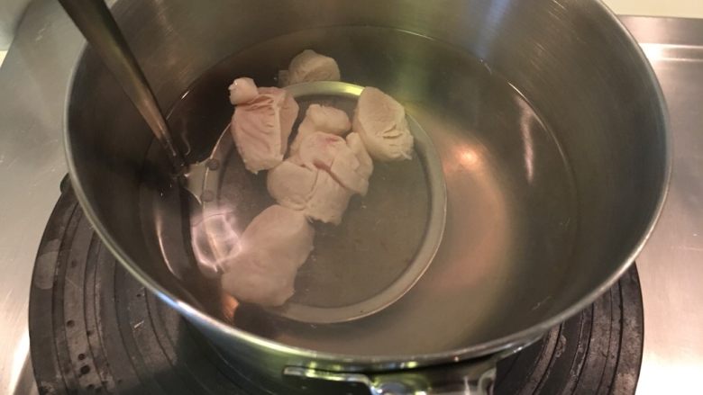 15. 起一锅热水烫熟鸡肉、鲷鱼、蛤蜊