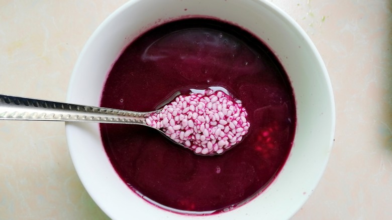 11. 另外取一个碗,放入100克糯米,加入三克红曲粉(本来想买甜菜根的,没买到,就想着用红曲粉了,成品也很漂亮哦)