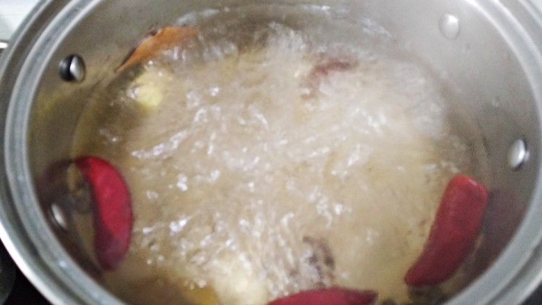2. 准备配料如上图八角,香叶,桂皮,花椒,生姜,干辣椒。