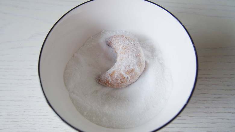 8. 饼干晾凉后,在糖粉中滚一圈装饰一下就可以了