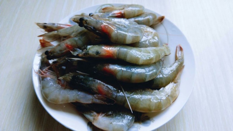 3. 首先将白虾处理一下,去虾线,将虾的爪子用食品简单剪掉。(剪不剪也可以根据个人喜欢)