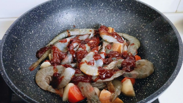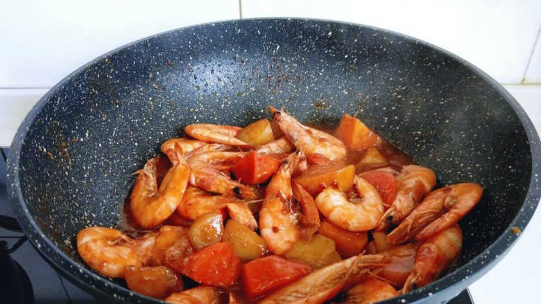 10. 10分钟后,虾已经面色,蔬菜也熟了。