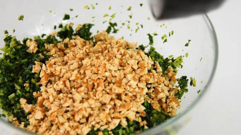 2. 马兰头洗净放入开水中,加盐、食用油,焯水1分钟捞出。