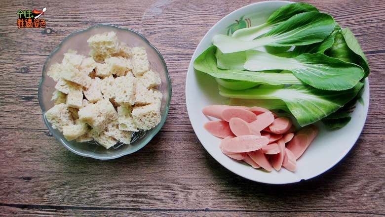 5. 豆芽炒软后倒入面筋、青菜快速翻炒