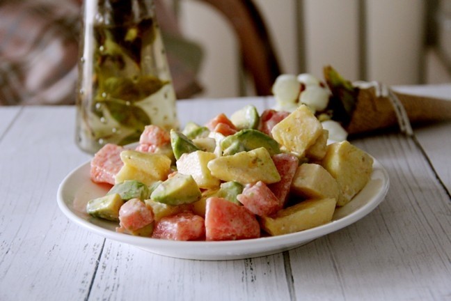 牛油果是很有营养的水果,今天和其他水果一起搭配做了沙拉,自己吃掉了一盘,( '▿ ' )