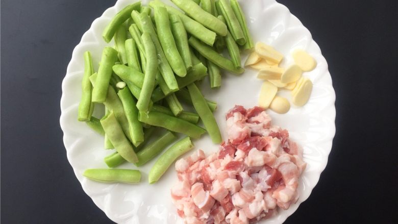 3. 先热锅倒少量油将四季豆煸熟透,煸至表皮出焦点,然后盛出备用。