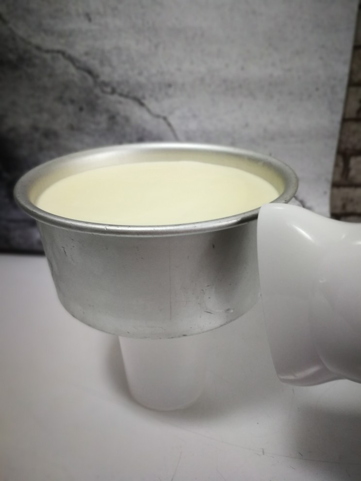 10. 这时会是很细腻的面糊倒入冷藏好的模具里,冷藏4小时+