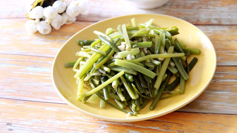 13. 装盘吃吧。这道菜蒜苔凉拌之后甜甜的。