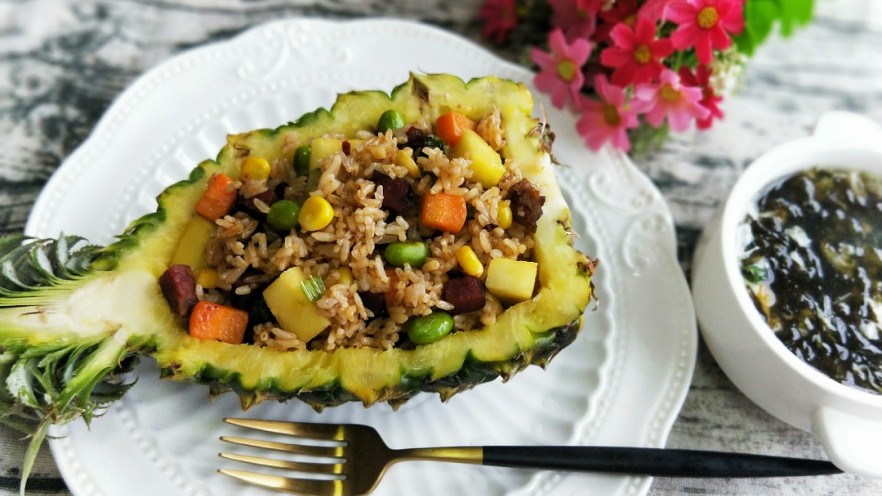 19. 把炒饭盛在菠萝盒里,高大上吧